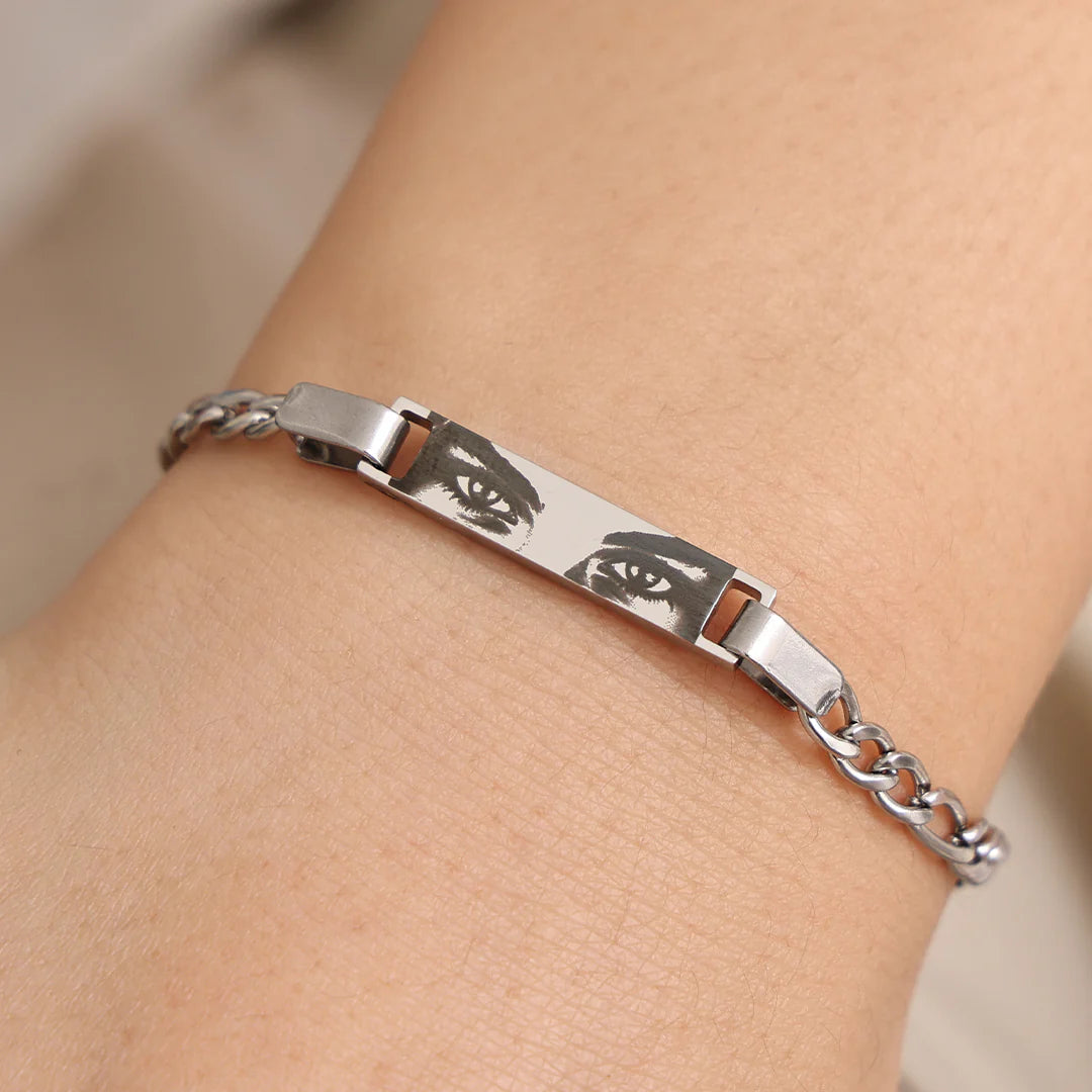 W przeciwieństwie do tradycyjnej biżuterii, Twoja bransoletka to wyjątkowe dzieło sztuki. Każdy wizerunek oka jest grawerowany delikatnym procesem – niepowtarzalnym, trwałym i pełnym emocji.