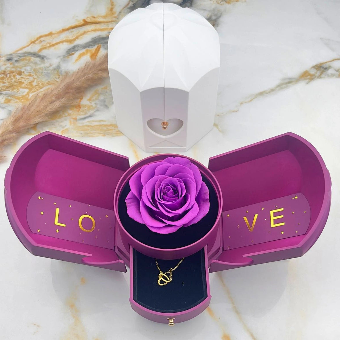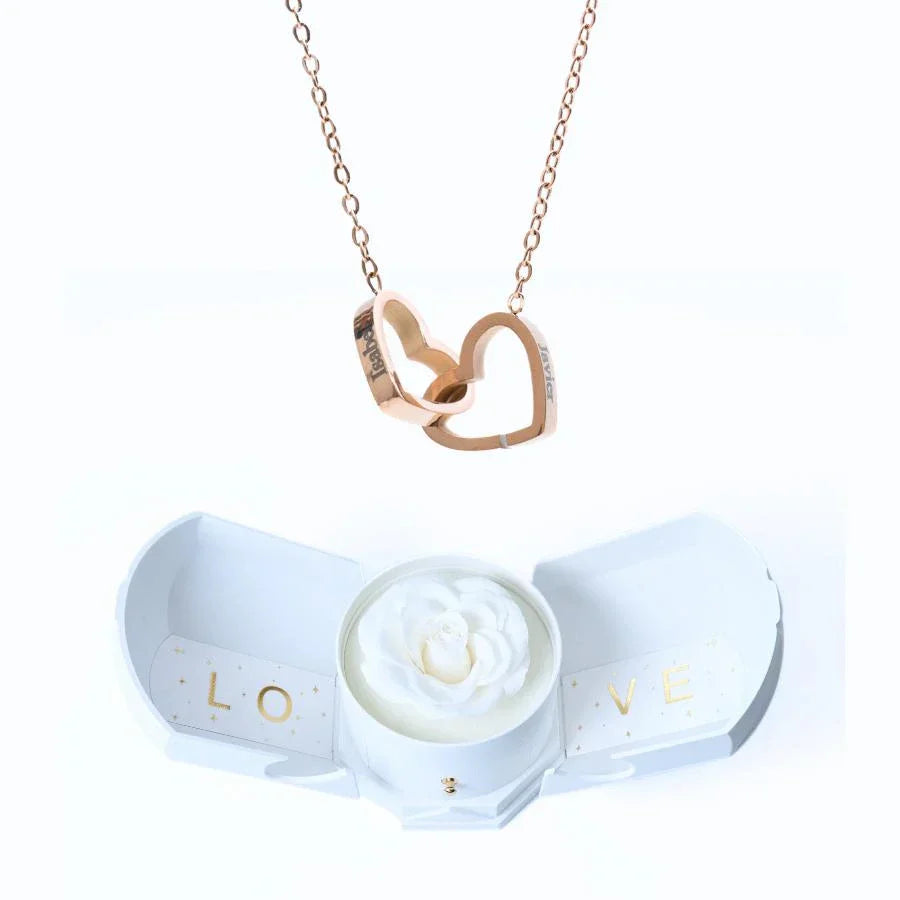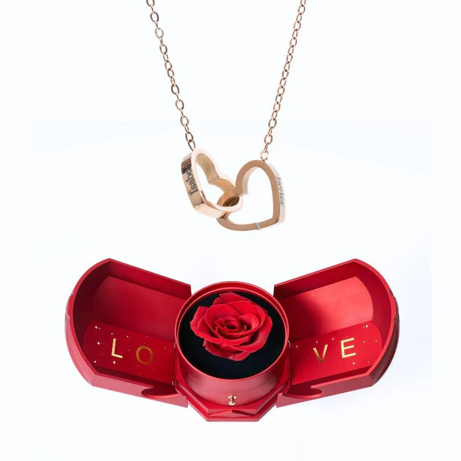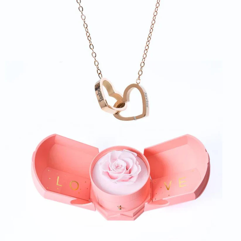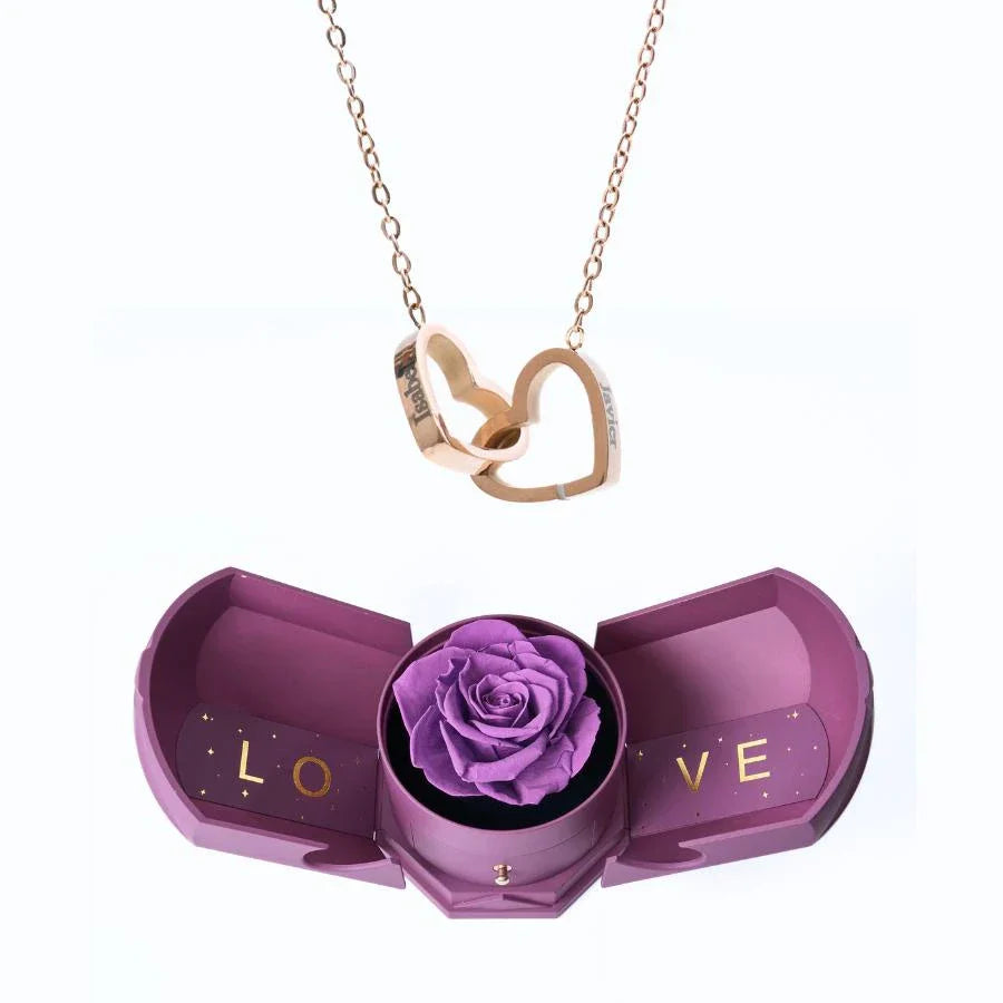 Pudełko Eternal Rose – z personalizowanym naszyjnikiem i różą